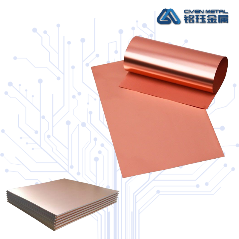 覆銅箔層壓板(Copper Clad Laminate,CCL)是將電子玻纖布或其它增強材料浸以樹脂,一面或雙面覆以銅箔并經熱壓而制成的一種板狀材料,簡稱為覆銅板。各種不同形式、不同功能的印制電路板,都是在覆銅板上有選擇地進行加工、蝕刻、鉆孔及鍍銅等工序,制成不同的印制電路。對印制電路板主要起互連導通、絕緣和支撐的作用,對電路中信號的傳輸速度、能量損失和特性阻抗等有很大的影響,因此,印制電路板的性能、品質、制造中的加工性、制造水平、制造成本以及長期的可靠性及穩定性在很大程度上取決于覆銅板。銘玨金屬生產的覆銅板專用銅箔是理想的覆銅板材料,它具有純度高、延伸率高、表面平整、精度高、易蝕刻等特點。同時,銘玨金屬還可以根據客戶需求,同時提供卷狀和片狀的銅箔材料。