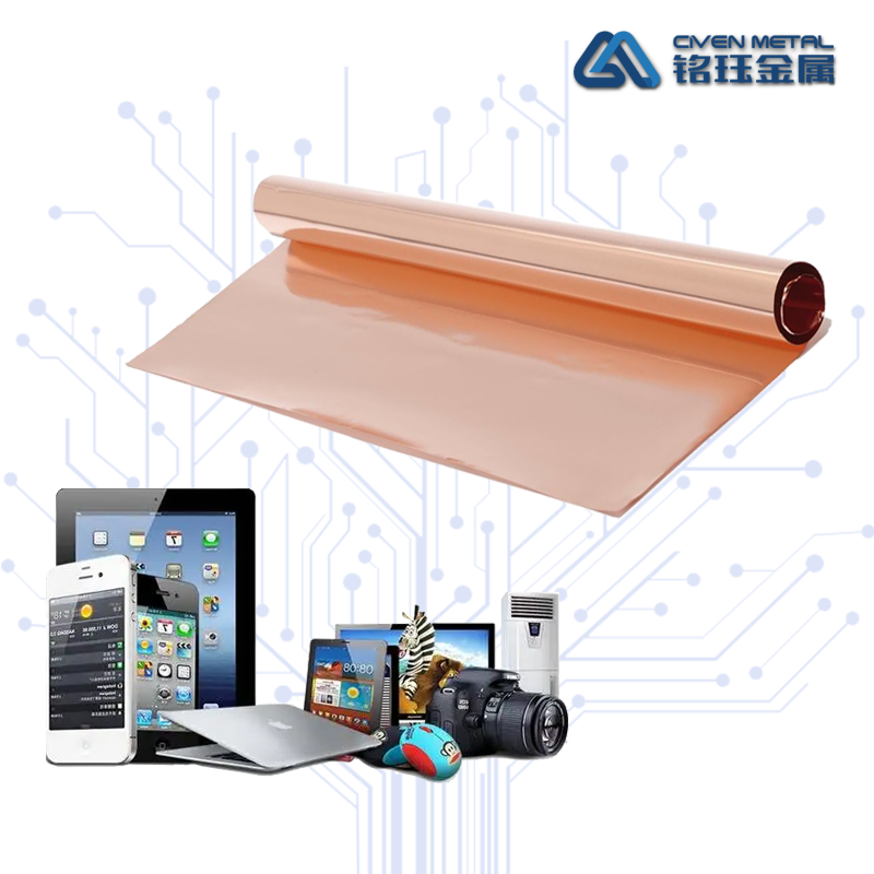 由于銅本身具有出色的導電性能,使其可以有效屏蔽電磁信號的傳播。并且純度越高的銅材料,電磁屏蔽越好,特別是針對高頻電磁信號的屏蔽。銘玨金屬生產的高純度銅箔是一款理想的電磁屏蔽材料,它具有純度高、表面一致性好、易覆合等特性。而且銘玨金屬可以對材料進行退火工藝處理,處理后的材料除了擁有更好的屏蔽效果,而且還非常容易切割成型。同時,為了能讓材料適應更加嚴苛的使用環境,銘玨金屬還可對材料進行電鍍工藝處理,讓材料具有更好的抗高溫及耐腐蝕的特性。