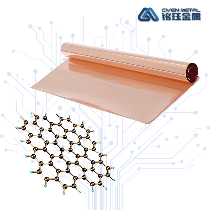 石墨烯是一種以sp2雜化連接的碳原子緊密堆積成單層二維蜂窩狀晶格結構的新材料。石墨烯具有優異的光學、電學、力學特性,在材料學、微納加工、能源、生物醫學和藥物傳遞等方面具有重要的應用前景,被認為是一種未來革命性的材料。化學氣相沉積法(CVD)是可控制備大面積石墨烯的一種最常用的方法。它的主要原理是利用平面金屬作為基底和催化劑,在高溫環境中通入一定量的碳源前驅體和氫氣,相互作用后在金屬表面沉積而得到石墨烯。銘玨金屬生產的石墨烯專用銅箔具有純度高、穩定性好、晶圓均勻、表面平整等特點,是CVD制程中理想的基底材料。