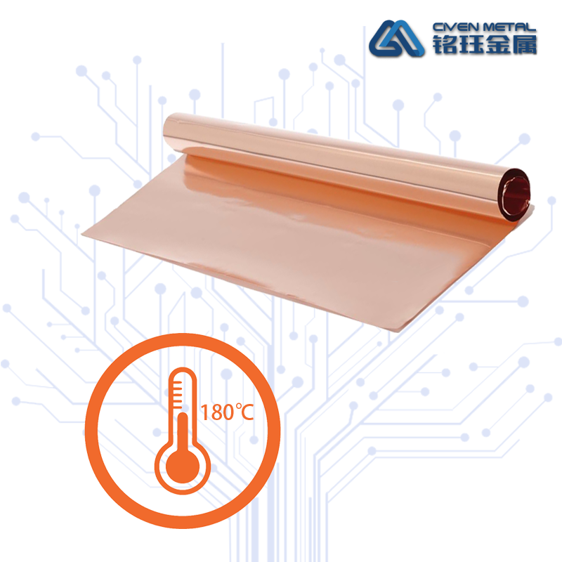 隨著現代科技的不斷發展,銅箔的應用也越來越廣泛。如今我們不但在一些傳統行業中如,線路板、電池、電子電器等看到銅箔身影,更在一些比較前沿的行業中看到它,比如,新能源、集成芯片、高端通信、航空航天等領域。但由于對一些產品的應用越來越廣,對于產品及其制作材料的性能要求也越來越高。銘玨金屬生產的耐高溫銅箔表面經過特殊的涂層處理,可以有效的抵抗加工或使用過程中的高溫,使銅箔表面不易變色,同時還具有一定的抗腐蝕性能。對于那些在生產加工或日常使用中,有高溫環境要求的終端產品非常適用。